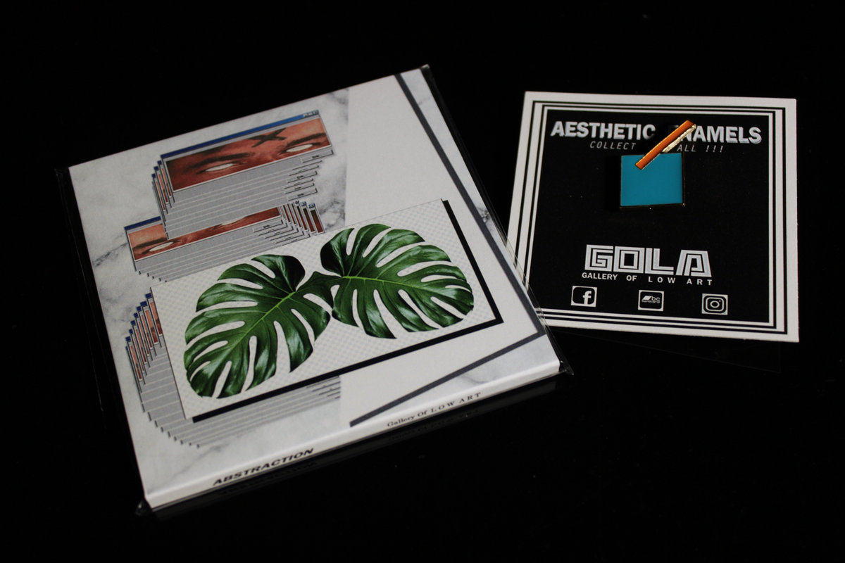 Abstraction ep on blue or turquoise 3.5 in 1.4 mb floppy diskette with enamel pin